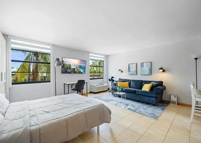 Located 16 km from Miami Airport railway station, the 39 m² Cozy Studio, Walk To The Beach, Restaurants, Bars Miami Beach is just a 7-minute walk from the Art Deco Historic District. The apartment features Wi-Fi throughout the property.